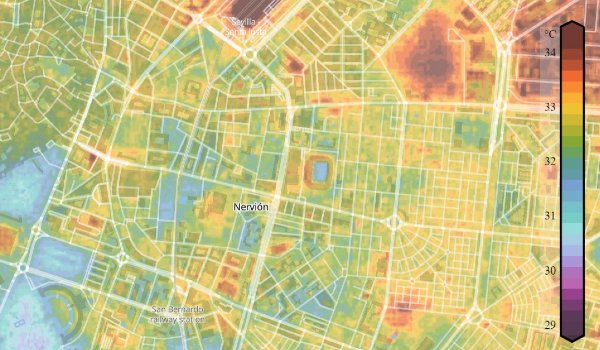 ¿Cuáles son las zonas de Nervión en las que hace más mella el calor? Este mapa de calor nos lo muestra.