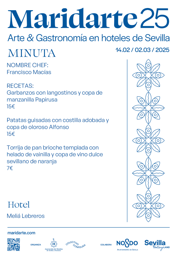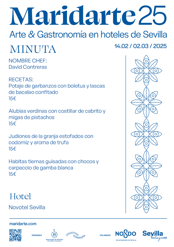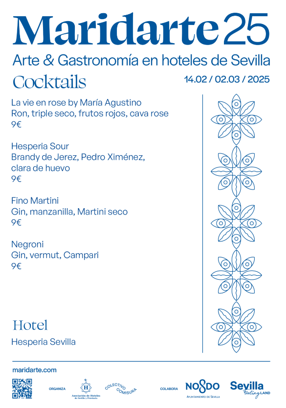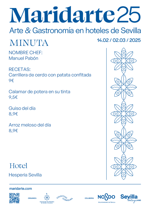 Tres hoteles de Nervión, así como la Fábrica de Artillería en el caso de las actividades paralelas, serán desde este viernes 14 de febrero escenario del Festival Maridarte. En esta cita, que se celebra hasta el 2 de marzo, los hoteles de Sevilla ofrecen recetas especiales en sus restaurantes, que se convierten también en sala de exposiciones de destacados artistas actuales. A continuación te desgranamos las propuestas de los restaurantes de los tres hoteles de Nervión, así como las actividades paralelas que se celebrarán en ellos y en la Fábrica de Artillería.