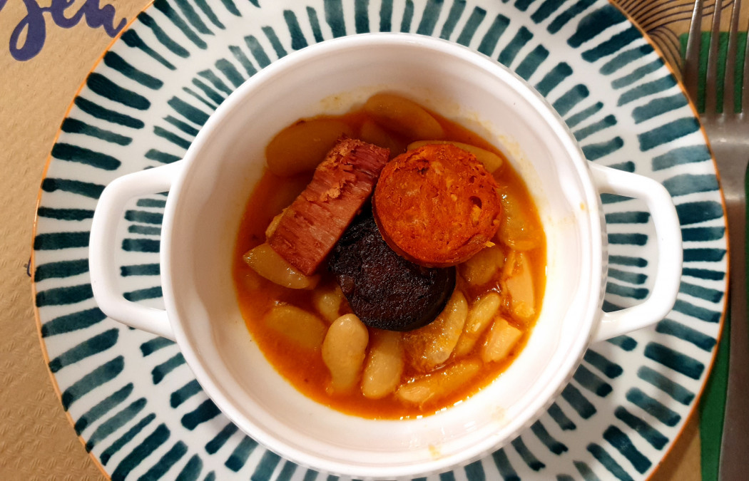 En nuestro caso y como, aunque parezca mentira, era nuestra primera visita, decidimos ir a los grandes monumentos asturianos. Para que pudiéramos probar de todo, decidimos compartir tres tapas de fabada entre los seis. ¡Y qué fabada! Las alubias están tiernas y empapadas por completo del denso caldo del guiso, bien reducido. La carne, la morcilla y el chorizo están bien guisados pero sin llegar a estar blandengues o dando la sensación de cocidos, y con un sabor suave pero intenso. Algunos hasta rebañamos la pequeña cacerolita y nos arrepentimos de no haber pedido seis tapas en vez de tres.
