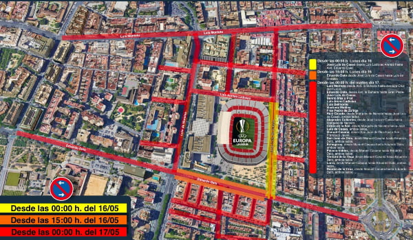 Cortes de tráfico y un amplio dispositivo de seguridad para la final de la Europa League de este miércoles.